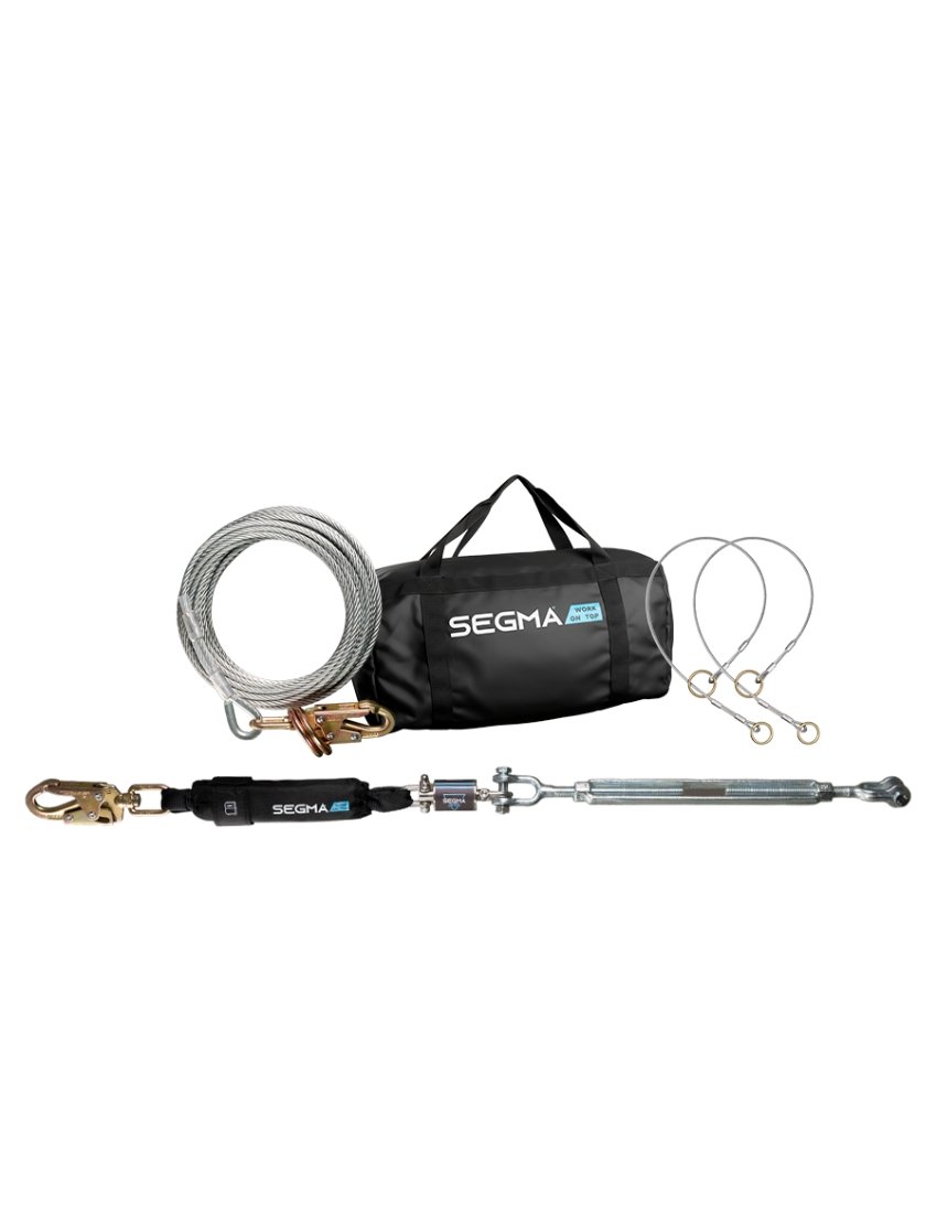El SEGMA H-LINE es un sistema de protección anticaídas diseñado para trabajos en altura de tipo temporal, que brinda seguridad y eficiencia sin necesidad de modificar ni dañar la estructura existente, configurable en largo de 0 a 20m máximo de extensión.