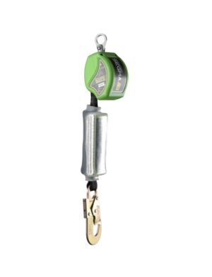 Dispositivo de uso sencillo que dispone de frenado mecánico y sistema interno de absorción de impacto, consigue un frenado rápido y seguro. En caso de caída, el equipo reduce la fuerza bajo los 6kN, además, su gancho dispone de un testigo de impacto, el que se activará si eso sucede, ayudando al usuario a identificar fácilmente un impacto. Elemento con certificado para uso vertical con capacidad para un usuario de hasta 140Kg incluyendo ropa y herramientas.