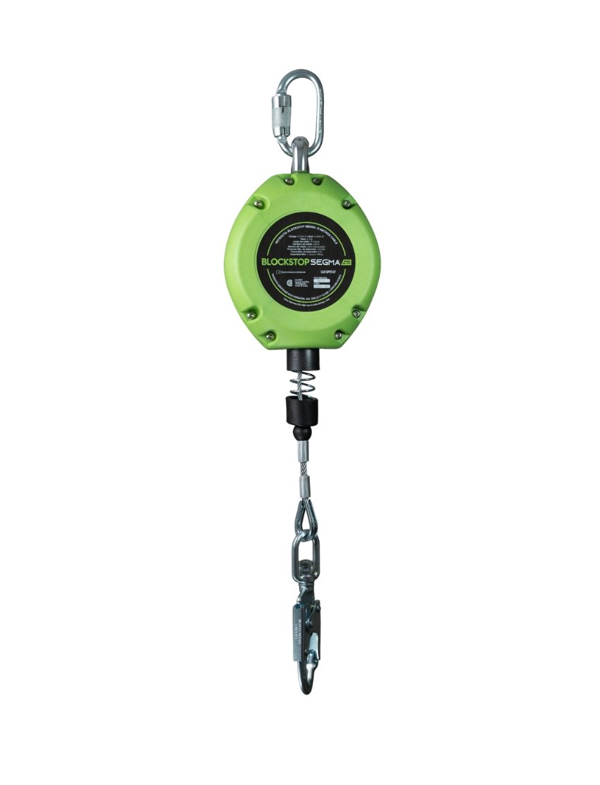 Sistema retráctil personal (SRL-P) de 2 m, fabricado con cinta de Kevlar y aramida, materiales de alta resistencia a la abrasión, cortes y condiciones extremas. Además cuenta con propiedades antiestáticas. En caso de caída, limita la fuerza de impacto a menos de 6 kN.