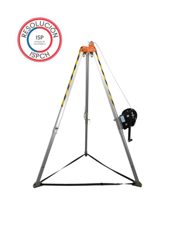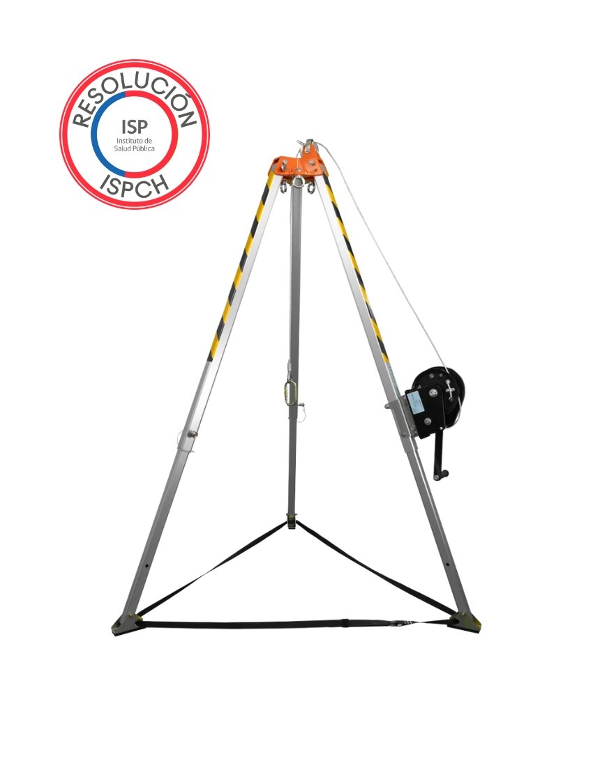 El Trípode de Aluminio es un dispositivo de anclaje móvil, ideal para espacios confinados, trabajos temporales y/o rescate, es fácil de armar y desmontar. Fabricado en aluminio para facilitar su transporte, dispone de patas telescópicas ajustables entre 1,12 y 2,15m. El Kit incluye un cabestrante manual bidireccional para maniobras de rescate y elevación del usuario con cable de 20m de largo; bolso de transporte y almacenaje para trípode y cabestrante. Éste último cuenta con una ventaja mecánica de relación de transmisión de 5:1.